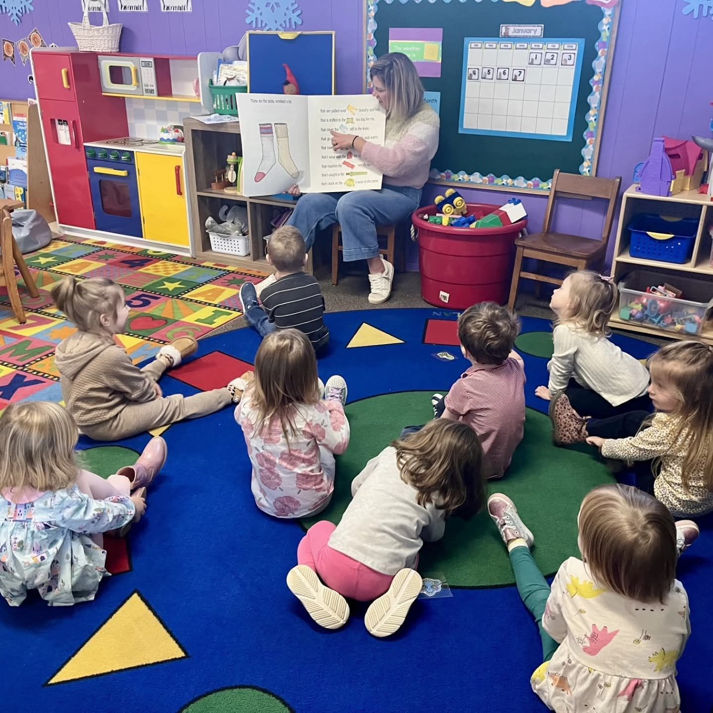 - Whole group play – circle time, dancing, movement activities